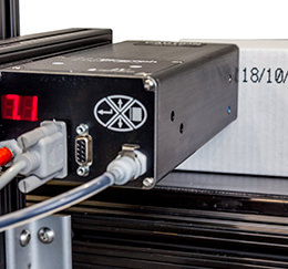 The IV9-Dot print head is environmentally sealed in order to perform reliably in harsh environments. The print head is available in ½” and 7/8” print heights and can be daisy-chained with up to 15 other IV9-Dot print heads, allowing you to print large logos or other large multi-lined alpha numeric print messages.
